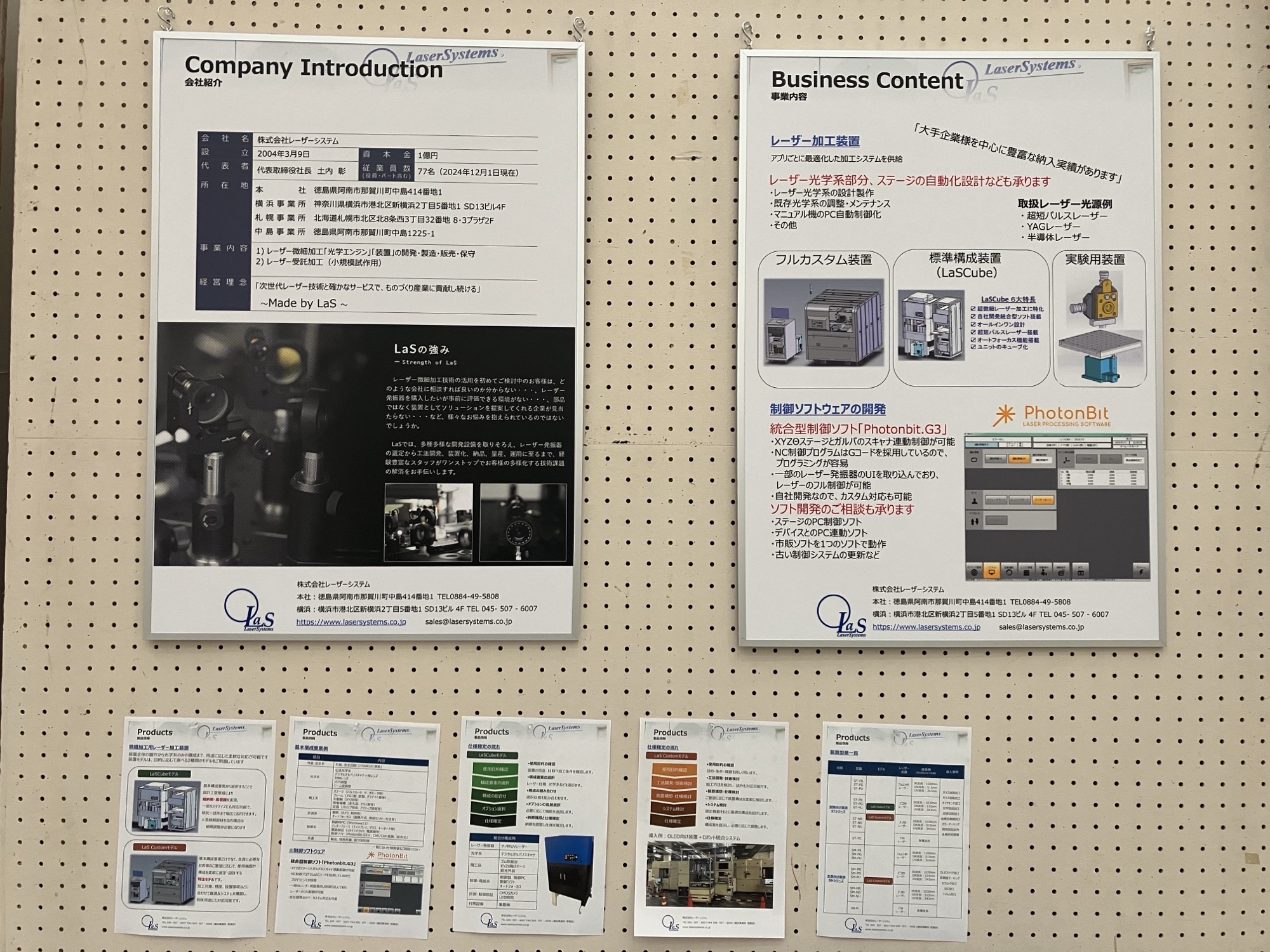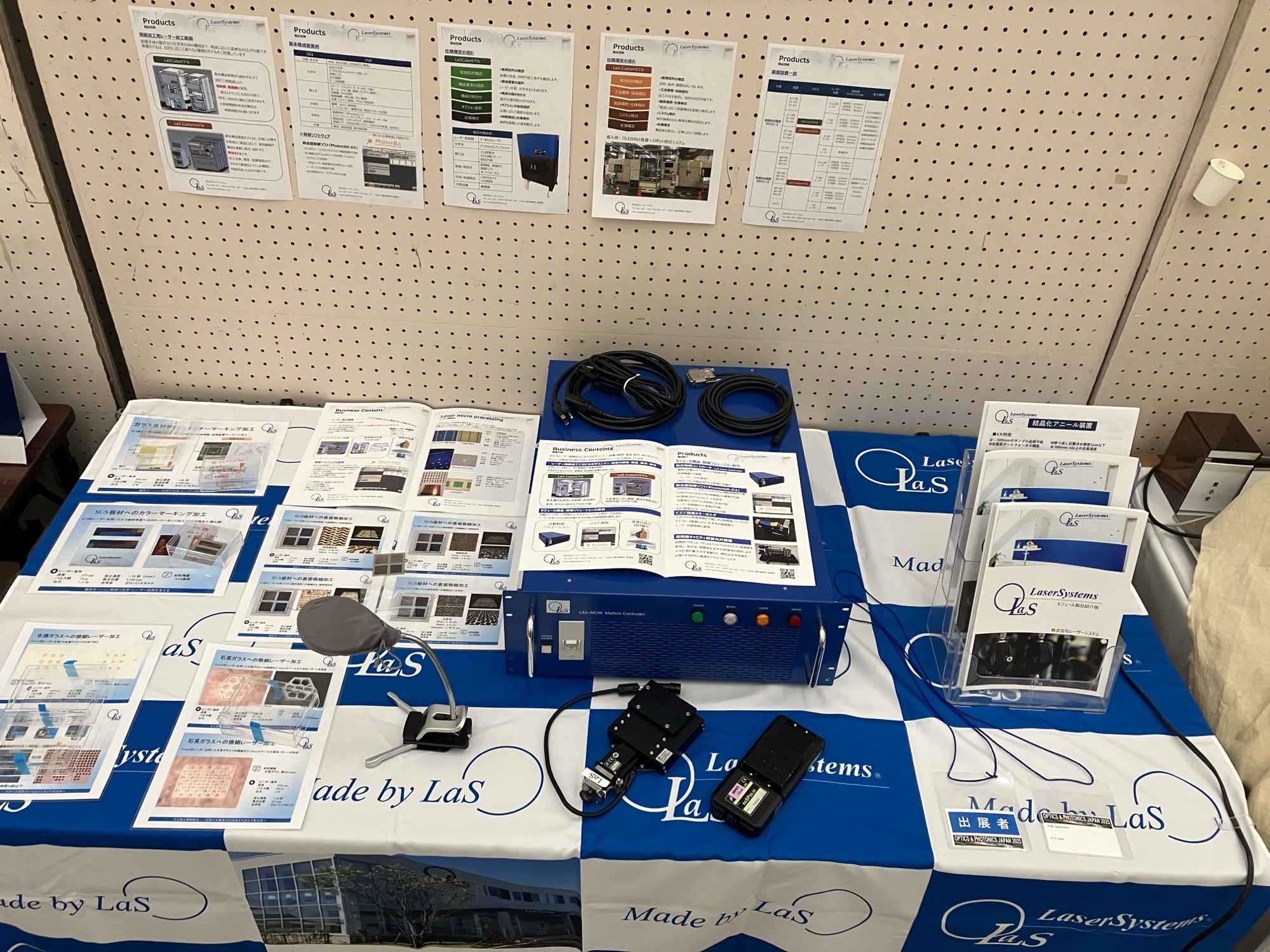 当社は徳島に本社を置く企業として、大学や研究機関に向けて、製品カタログ、レーザー加工サンプル、制御コントローラを展示しました。装置だけでなく、制御やソフトウェアを含めたソリューションを紹介し、研究開発に貢献できる技術をご提案しました。