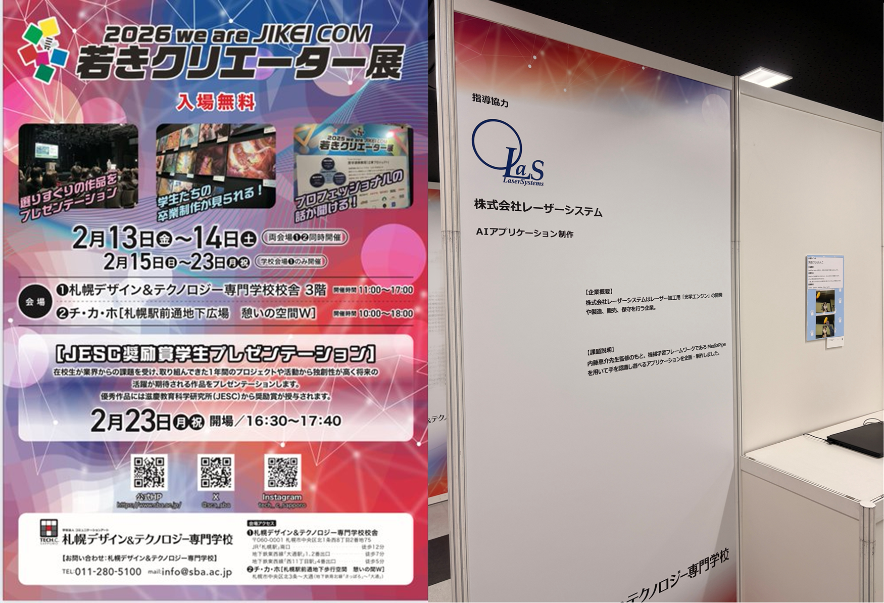 このたび、札幌デザイン&テクノロジー専門学校にて開催された「若きクリエーター展」において 当社社員が外部講師として指導を行っている学生の作品が展示されました。